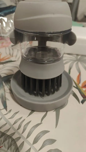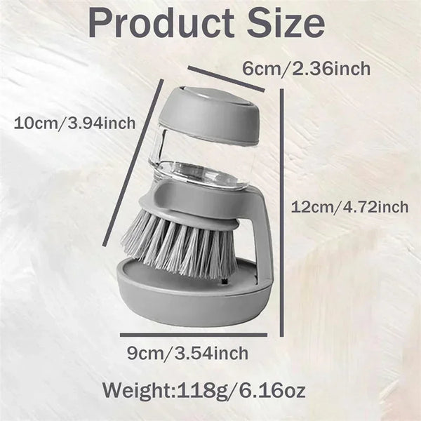 Effortlessly scrub away stubborn grease and grime with the innovative soap dispenser brush that simplifies dishwashing.